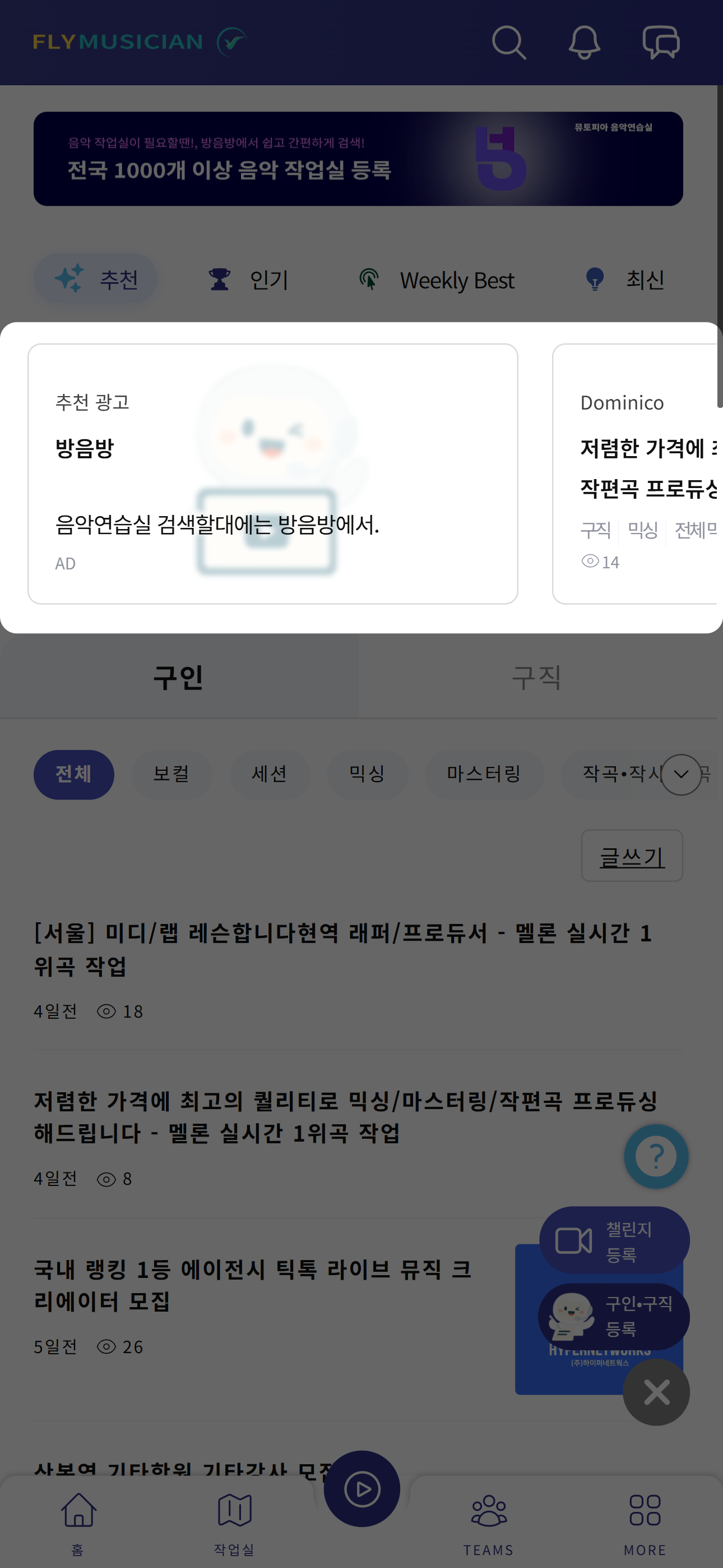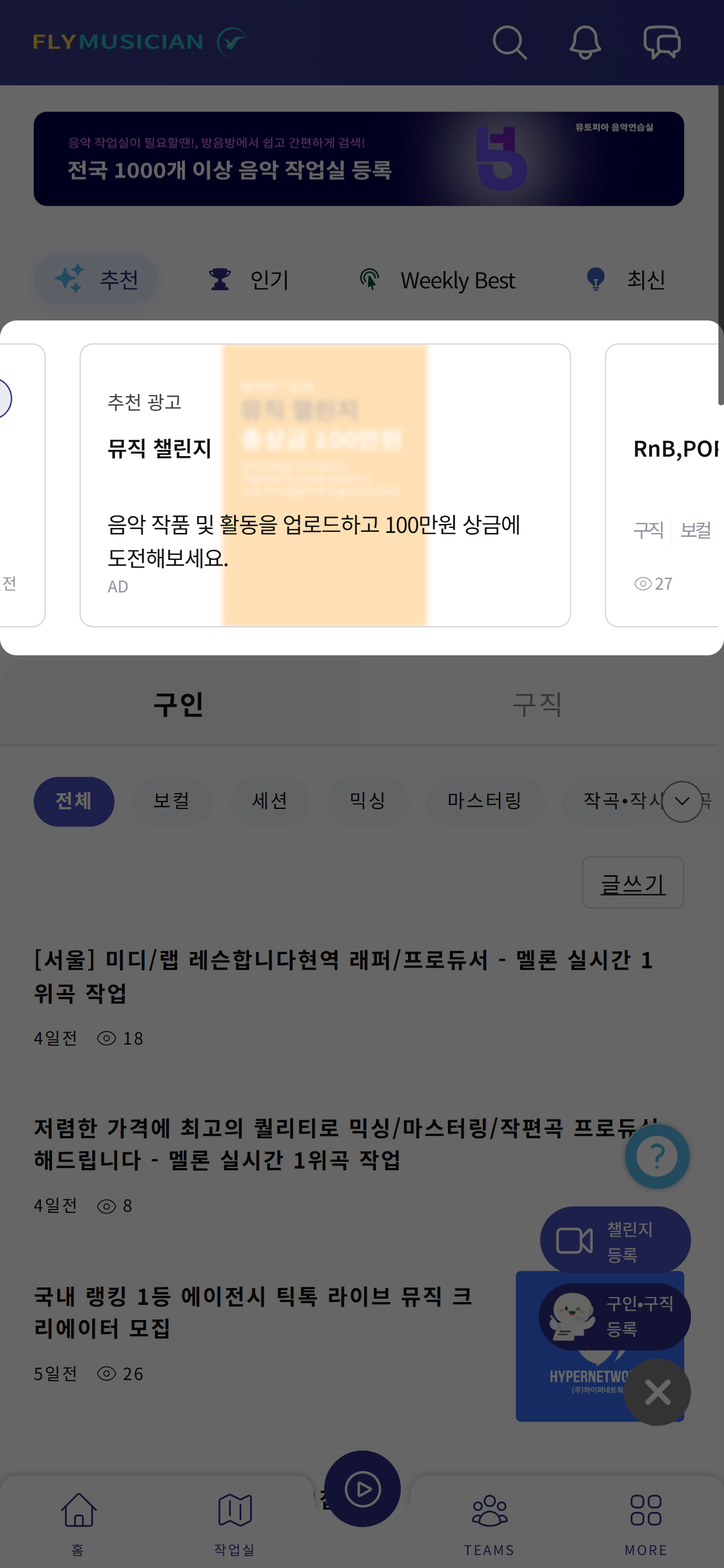 간한단 글자 및 키워드로 뮤지션에게 꼭 맞는 서비스가 있다면 알려보세요. #광고신청